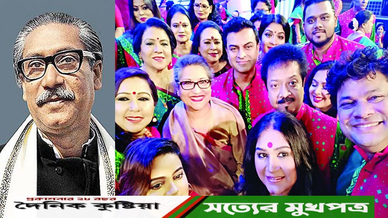 বঙ্গবন্ধুর প্রতি শ্রদ্ধা জানিয়ে আরটিভির বিশেষ গান। এই গানের ভিডিওতেও অংশ নিয়েছেন শোবিজের বিভিন্ন অঙ্গনের ১০০জন শিল্পী। গেয়েছেন রিজিয়া পারভীন, আঁখি আলমগীর, ইবরার টিপু, মুহিন খান, কিশোর দাশ প্রমুখ। রবিউল ইসলাম জীবনের কথায় গানটির সুর ও সংগীতায়োজন করেন ইবরার টিপু।