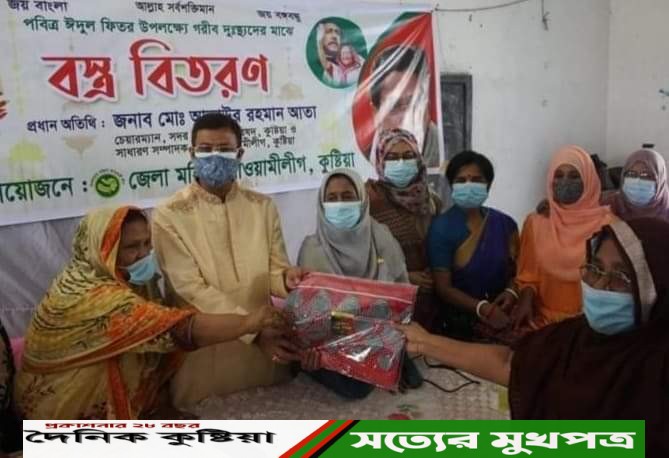 ঈদুল ফিতর উপলক্ষ্যে গরীব দুস্থ ও অসহায়দের মাঝে ঈদ বস্ত্র বিতরণ করেছে কুষ্টিয়া জেলা মহিলা আওয়ামীলীগ। বুধবার কলকাকলী মাধ্যমিক বিদ্যালয়ে এ ঈদ বস্ত্র বিতরণ করেন জেলা মহিলা আওয়ামী লীগের নেতৃবৃন্দ ।