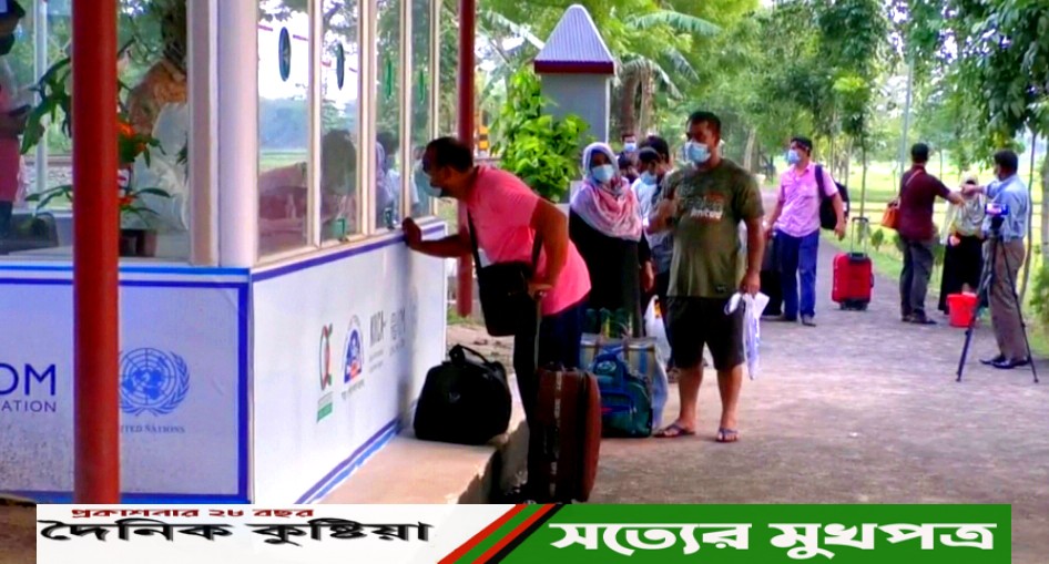 ভারতের কোলকাতাস্থ বাংলাদেশ দূতাবাস থেকে অনাপত্তি পত্র (এনওসি) নিয়ে আজ সোমবার সকাল থেকে সন্ধ্যা ৬টা পর্যন্ত ৬৫ জন বাংলাদেশী দর্শনা চেকপোস্টে প্রবেশের পর স্বাস্থ্য বিভাগের পক্ষ থেকে প্রত্যেকের অ্যান্টিজেন পরীক্ষা করা হয়। এদের মধ্যে এক ব্যক্তি করোনা শনাক্ত হয়েছেন। তার বাড়ি কুষ্টিয়ায়। পরে বর্ডার গার্ড বাংলাদেশ (বিজিবি), পুলিশের অভিবাসন শাখা (ইমিগ্রেশন) ও শুল্ক বিভাগের (কাস্টমস) আনুষ্ঠানিকতা শেষে সেখান থেকে তাদের নির্ধারিত পরিবহনযোগে (মাইক্রোবাস)কুষ্টিয়া, ঝিনাইদহ, মেহেরপুর ও চুয়াডাঙ্গা সদর হাসপাতাল নেয়া হয়েছে। সেখানে তারা ১৪ দিনের বাধ্যতামূলত প্রাতিষ্ঠানিক কোয়ারেন্টাইনে থাকবেন।