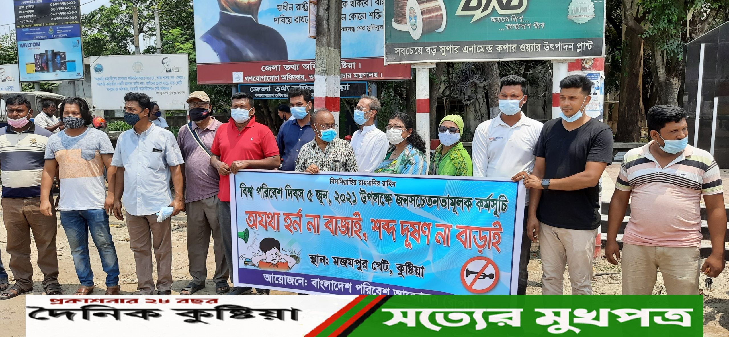 ৫ জুন বেলা ১১টায় কুষ্টিয়া শহরের মজমপুর গেটে ঘণ্টাব্যাপী এ কর্মসূচি পালিত হয়। এসময় পরিবেশবাদীরা যানবাহন চালকদের অযথা হর্ন না বাজানোর অনুরোধ জানান। জনস্বাস্থ্যের জন্য শব্দ দূষণের ক্ষতিকর দিক তুলে ধরেন তারা।
