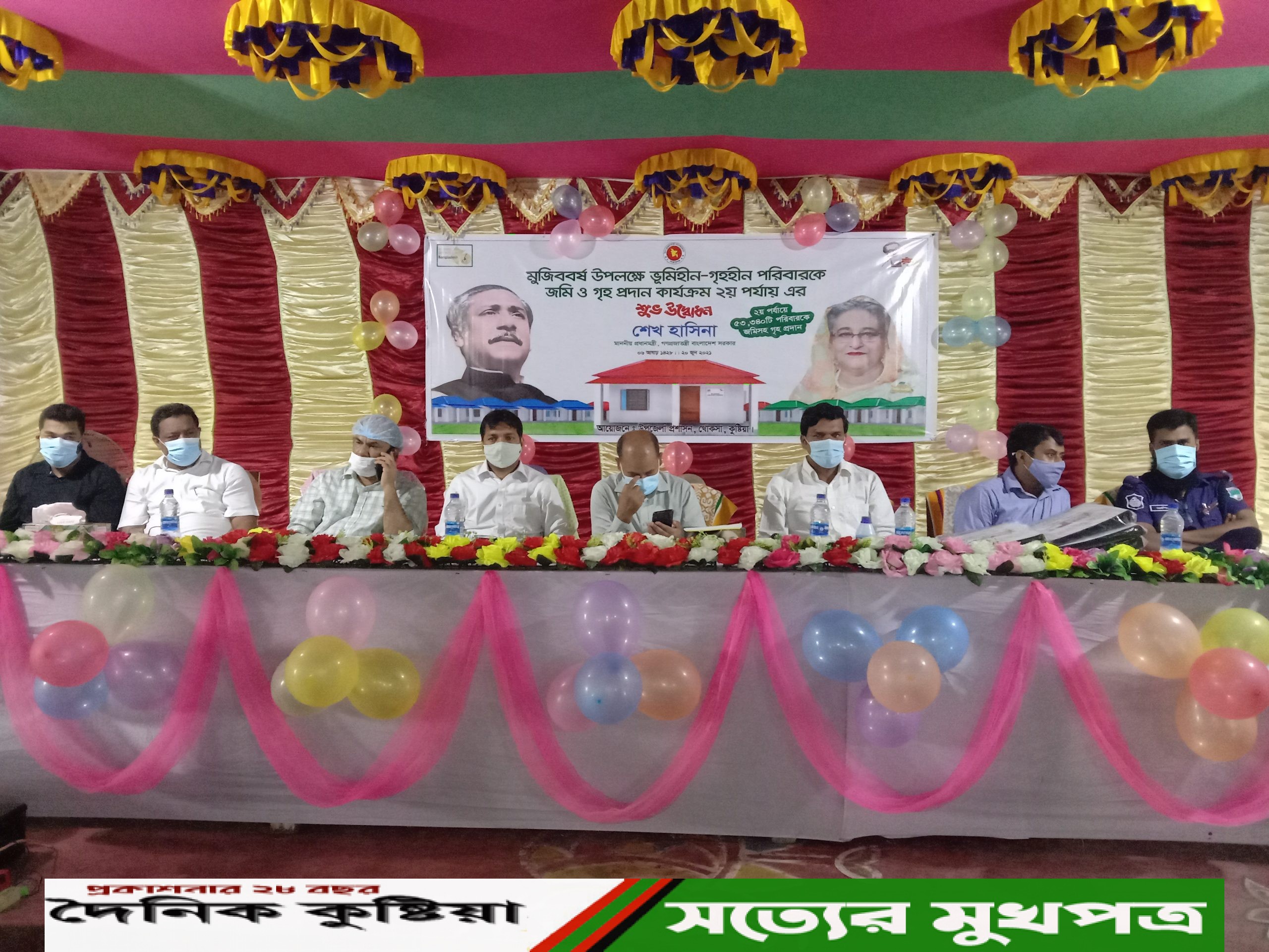 মুজিববর্ষ উপলক্ষে ভূমিহীন ও গৃহহীন পরিবারকে জমিসহ ঘর দেয়ার ২য় পর্যায়ের কার্যক্রমের গণভবন থেকে ভার্চুয়াল উদ্বোধন করলেন মাননীয় প্রধানমন্ত্রী শেখ হাসিনা । এ উপলক্ষে কুষ্টিয়ার খোকসা উপজেলার ৩২ টি ভূমিহীন পরিবারের মাঝে জমির দলিল ও ঘরের চাবি হস্তান্তর অনুষ্ঠান অনুষ্ঠিত হয়।