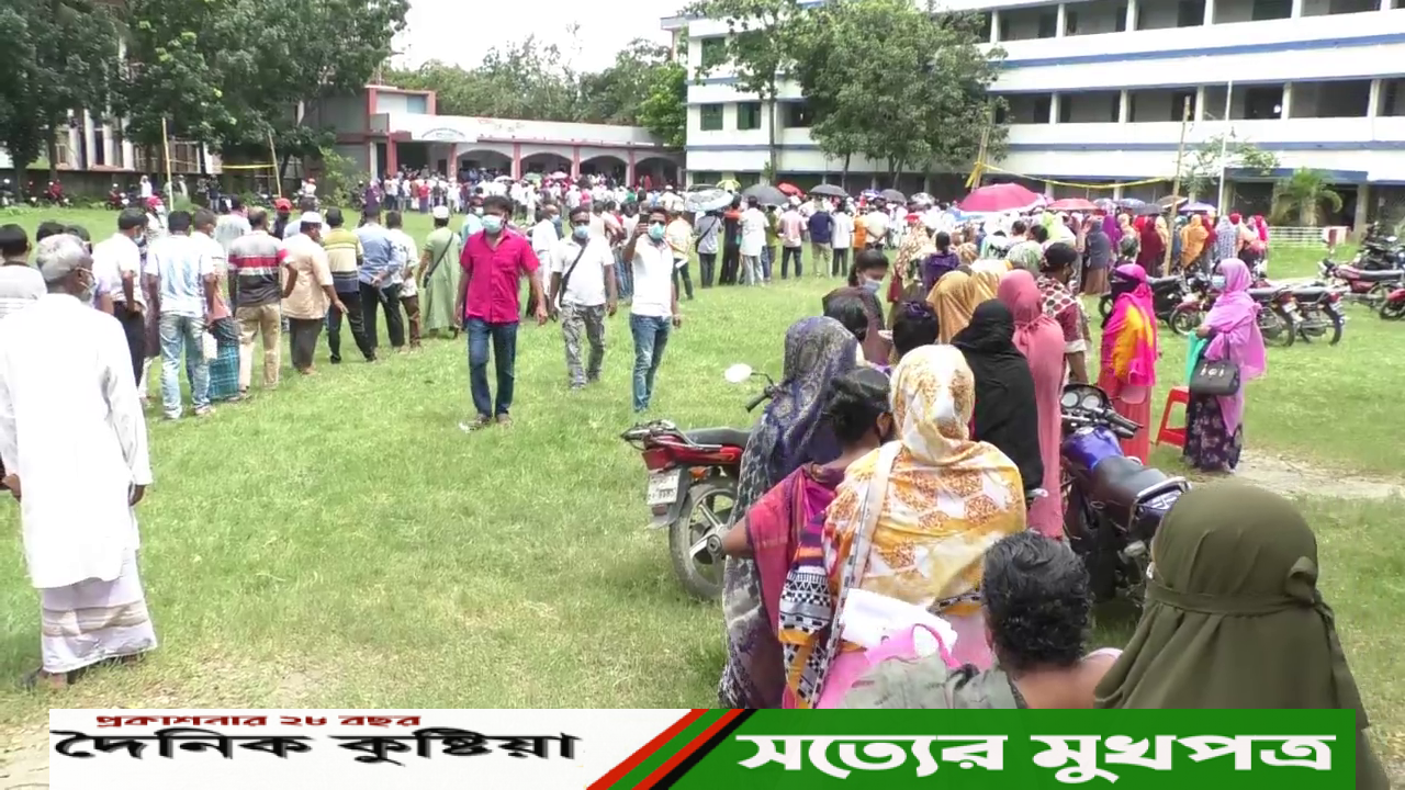 কুষ্টিয়ায় করোনার টিকা নিতে গা ঠেলা ভিড়, পুলিশ মোতায়েন