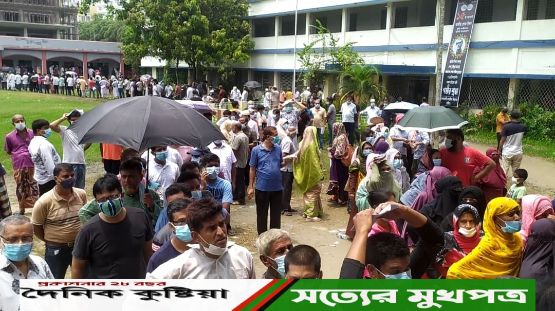 কুষ্টিয়ায় গণটিকাদান কেন্দ্রে চরম বিশৃঙ্খলা/নেই স্বাস্থ্যবিধির বালাই