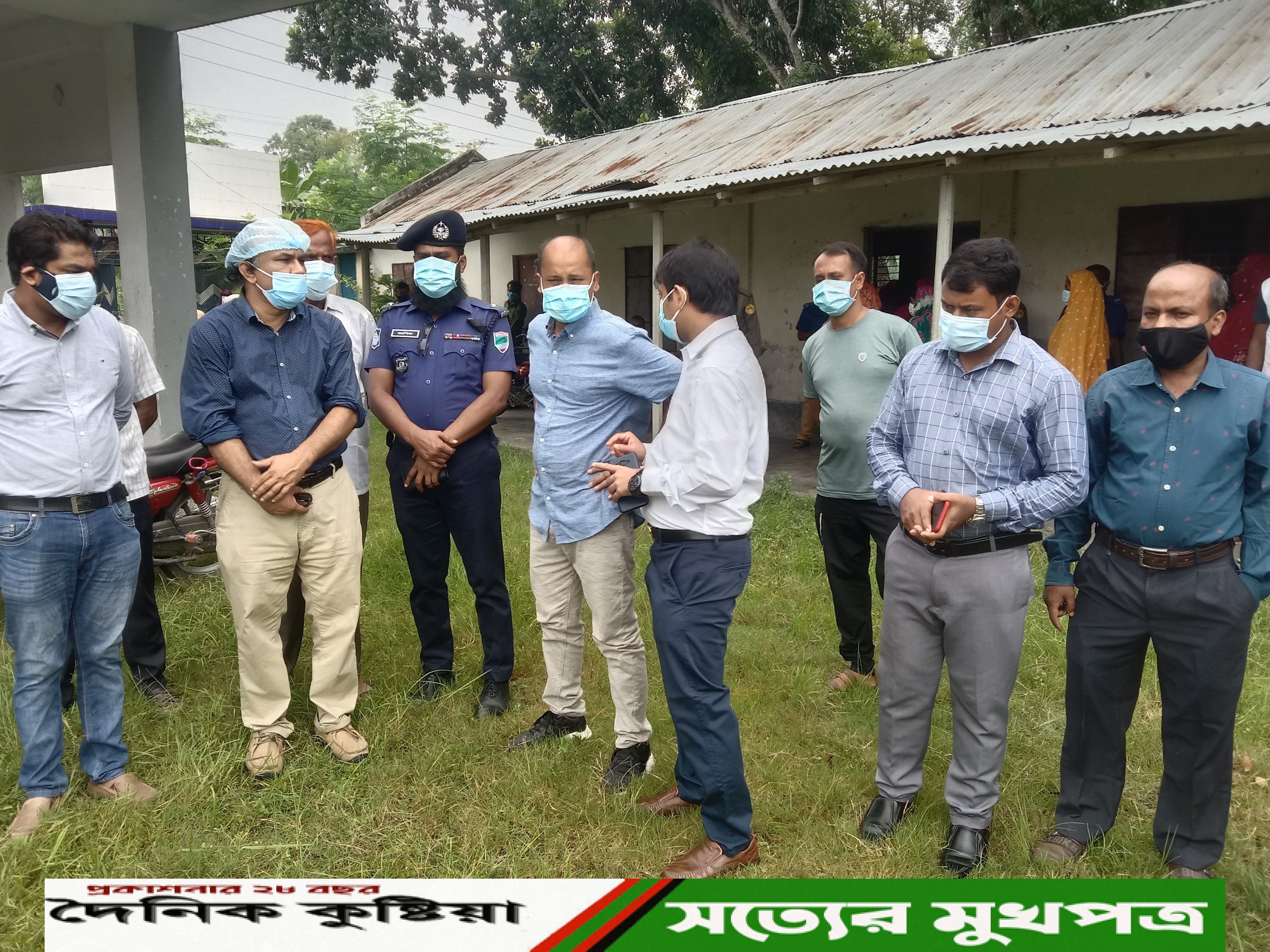 সকাল থেকে টিকাদান কার্যক্রম সরেজমিনে পরিদর্শনে আসেন টিকা পরিদর্শন কমিটি। উপজেলা নির্বাহী অফিসার মেজবাহ্ উদ্দীন এর সভাপতিত্বে উক্ত প্রদর্শন কমিটিতে সরেজমিন পরিদর্শনে আসেন কুষ্টিয়া অতিরিক্ত জেলা প্রশাসক (রাজস্ব)মোঃ সিরাজুল ইসলাম, উপজেলা স্বাস্থ্য ও পরিবার পরিকল্পনা কর্মকর্তা ডাক্তার কামরুজ্জামান সোহেল, সহকারী কমিশনার (ভূমি) ইসহাক আলী, উপজেলা কৃষি কর্মকর্তা সবুজ কুমার সাহা সহ সংশ্লিষ্ট বিভিন্ন দপ্তরের কর্মকর্তা কর্মচারী ও ইউনিয়ন পরিষদের চেয়ারম্যান মেম্বার ও স্থানীয় ভলেন্টিয়ার গণ। এছাড়াও আইন-শৃঙ্খলা রক্ষার্থে থানা ভারপ্রাপ্ত কর্মকর্তা (ওসি) সৈয়দ মোঃ আশিকুর রহমান উপস্থিত ছিলেন।