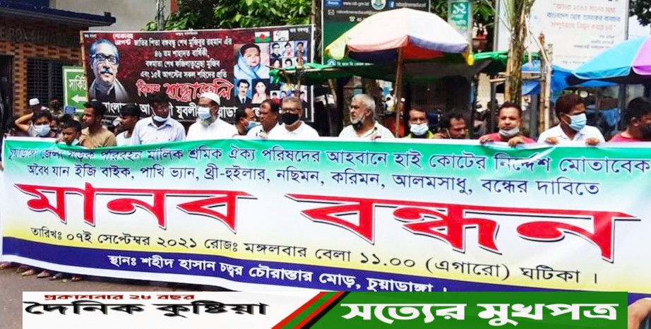 চুয়াডাঙ্গায় সড়কে অবৈধ যান চলাচল বন্ধের দাবিতে মানববন্ধন