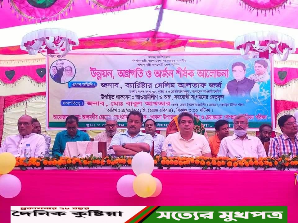 যুবলীগের প্রেসিডিয়াম সদস্য ও কুষ্টিয়া -০৪ আসনের সংসদ সদস্য ব্যারিস্টার সেলিম আলতাফ জর্জ বলেন, ' জনগণ জামাত - বিএনপির রাজনীতিতে কবর রচনা করেছে। বিএনপি এখন ঘরেবসে দরজা লাগিয়ে আবাসিক রাজনীতি করতেছে। ঘরের ভিতরে তাঁরা বারবার আন্দোলন সংগ্রামের ডাক দেয়। ঘরে ভিতরেই তাঁরা সংগ্রাম করে। 'রোববার বিকেলে কুষ্টিয়ার খোকসা উপজেলার গোপকগ্রাম ইউনিয়ন আওয়ামী লীগ আয়োজনে প্রধানমন্ত্রী দেশরত্ন শেখ হাসিনা'র উন্নয়ন, অগ্রগতি ও অর্জন শীর্ষক আলোচনা সভায় প্রধান অতিথির বক্তব্যে গোপকগ্রাম ইউনিয়ন পরিষদ চত্ত্বরে তিনি এসব কথা বলেন। সংসদ সদস্য ব্যারিষ্টার সেলিম আলতাফ জর্জ বলেন, ' আওয়ামী লীগ ক্ষমতায় থাকলেই কেবল দেশের উন্নয়ন হয়। দেশের মানুষ আওয়ামী লীগের উন্নয়নে বিশ্বাসী। সেজন্য শেখ হাসিনার ডাকে সারা দিয়ে জনগণ বারবার নৌকায় ভোট দেয়। '