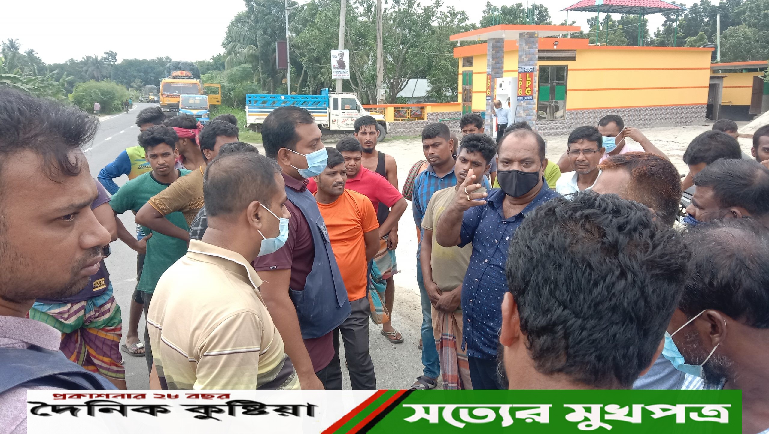 এদিকে কুষ্টিয়া-রাজবাড়ী মহাসড়কে ব্যারিকেড তৈরি করে ট্রাক এবং পণ্য পরিবহন বন্ধ রাখা হয় দুপুরে খোকসা থানার ভারপ্রাপ্ত কর্মকর্তা ওসি সৈয়দ মোঃ আশিকুর রহমানের হস্তক্ষেপে এ সড়কের ট্রাক ও পণ্যবাহী যানবাহন চলাচল স্বাভাবিক হয়।