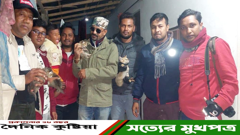 জানা যায়, গত ৮ জানুয়ারি রাতে কুমারখালী উপজেলার বাশগ্রাম এলাকার শালঘর মধুয়া গ্রামে স্থানীয়রা বিরল প্রজাতির ৫ টি বনবিড়ালের ছানা দেখতে পেয়ে সেগুলো ধরে ফেলে। পরে ঐ এলাকার স্থানীয় তিন যুবক তন্ময়, তানভির ও আনাস বনবিড়ালের ছানাগুলোকে উদ্ধার করে বাংলাদেশ জীব বৈচিত্র্য সংরক্ষণ ফেডারেশন (বিবিসিএফ) কুষ্টিয়া টিমকে খবর দেয়।