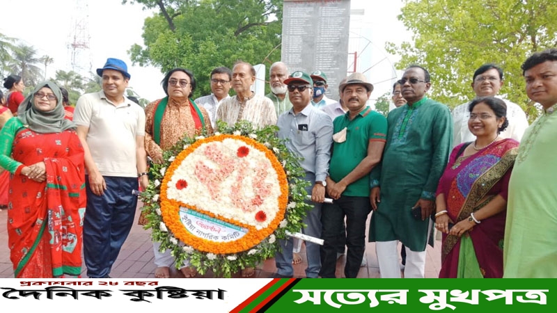 নাগরিক কমিটির সভাপতি প্রফেসর ডা. এসএম মুস্তানজিদ ও সাধারণ সম্পাদক প্রফেসর ড. এম সেলিম তোহার নেতৃত্বে নাগরিক কমিটির নেতৃবৃন্দ সকালে কুষ্টিয়া কালেক্টরেট চত্বরে শহীদ স্মৃতি সৌধ বেদীতে পুস্পার্ঘ্য অর্পণ করেন। পুস্পস্তবক অর্পণের আগে একটি র্যালী অনুষ্ঠিত হয়।