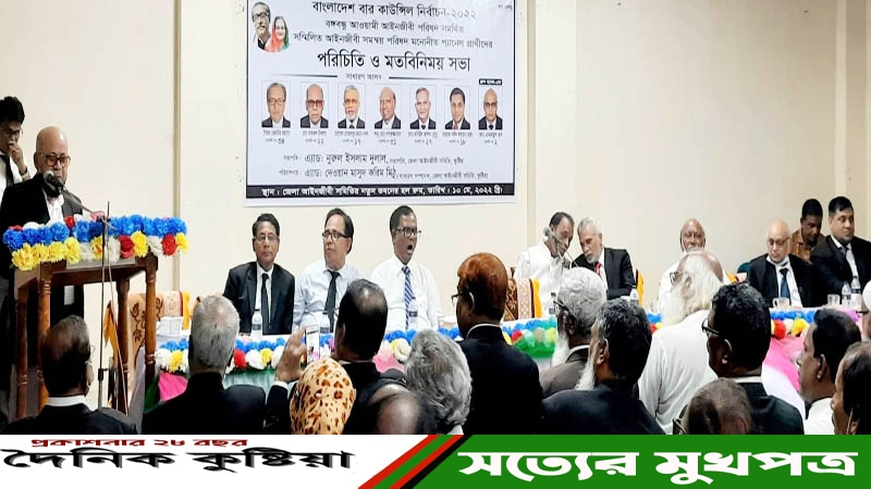 বাংলাদেশ বার কাউন্সিল নির্বাচন ২০২২ উপলক্ষে আওয়ামী আইনজীবী পরিষদ সমর্থিত সম্মিলিত আইনজীবী সমন্বয় পরিষদ মনোনীত প্যানেল প্রার্থীদের পরিচিত ও মতবিনিময় সভা অনুষ্ঠিত হয়েছে কুষ্টিয়া বার কাউন্সিলে।
