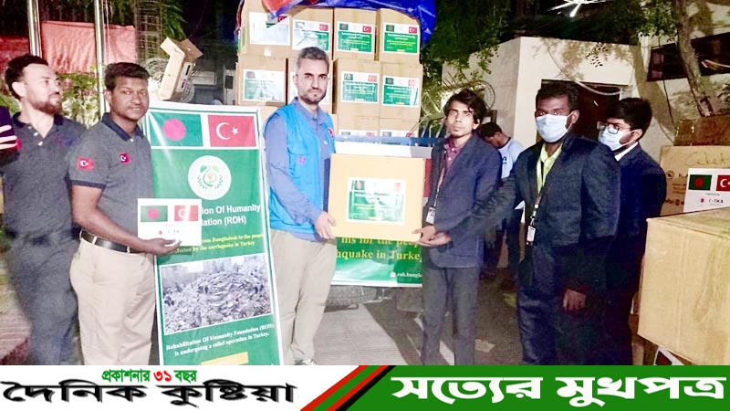 কুষ্টিয়া থেকে বেসরকারী স্বেচ্ছাসেবী সংস্ধা আর.ও. এইচ ফাউন্ডেশন তুরস্কে ত্রাণ সামগ্রী পাঠিয়েছে।