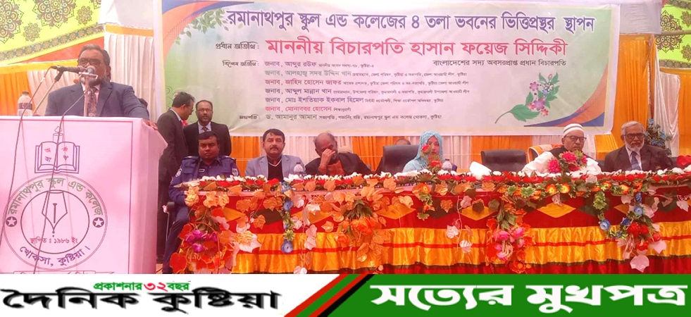 গত রবিবার কুষ্টিয়ার খোকসা উপজেলার ওসমানপুর ইউনিয়নের রমনাথপুর স্কুল এন্ড কলেজের ৪ তলা ভবনের ভিত্তিপ্রস্তর স্থাপন অনুষ্ঠানের প্রধান অতিথির বক্তব্যে তিন একথাগুলো বলেন।