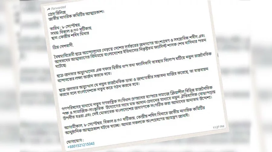 বৈষম্যবিরোধী ছাত্র আন্দোলনের প্লাটফরম/আত্মপ্রকাশ করবে ‘জাতীয় নাগরিক কমিটি’