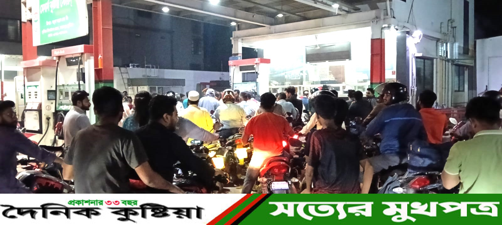 কুষ্টিয়ায় গুজবে জ্বালানি সংকটের আতঙ্ক, রাতে ফিলিং স্টেশনে উপচে পড়া ভিড়