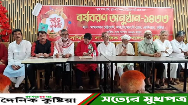 কুষ্টিয়ার দৌলতপুর উপজেলায় আধ্যাত্মিক সাধু গুরু (পীর) আব্দুর রহমান শামীম ওরফে জাহাঙ্গীর (৫৭) হত্যাকাণ্ডের প্রতিবাদে এবং জড়িতদের দ্রুত গ্রেপ্তার ও দৃষ্টান্তমূলক শাস্তির দাবিতে বিক্ষোভ মিছিল ও মানববন্ধন করেছেন তার ভক্ত ও স্থানীয় এলাকাবাসী।