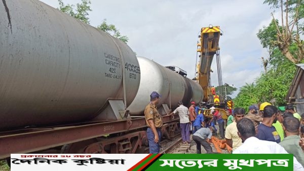 দৈনিক কুষ্টিয়া অনলাইন/ চুয়াডাঙ্গায় রেলওয়ে পশ্চিম জোনের একটি তেলবাহী ট্যাংকার লাইনচ্যুত হয়েছে। এ ফলে খুলনার সাথে সারাদেশের রেল যোগাযোগ বন্ধ হয়ে গেছে। রোববার দিবাগত রাত ১২ টা ৪০ মিনিটের দিকে