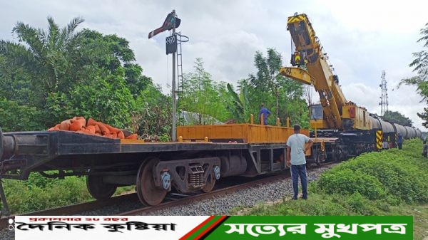 দৈনিক কুষ্টিয়া অনলাইন/ চুয়াডাঙ্গায় লাইনচ্যুত হওয়া রেলওয়ে পশ্চিম জোনের তেলবাহী ট্যাংকারাট উদ্ধার করা হয়েছে। ফলে প্রায় ১২ ঘন্টা পর খুলনার সাথে সারাদেশের রেল যোগাযোগ পূণঃস্থাপিত হয়েছে। “বেলা ১২টা ৩০ মিনিটে