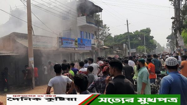 জহির রায়হান সোহাগ, চুয়াডাঙ্গা/ চুয়াডাঙ্গার আলমডাঙ্গায় আগুনে পুড়ে গেছে তিনটি ব্যবসা প্রতিষ্ঠানের জিনিসপত্র। এতে ৪ লক্ষাধিক টাকার ক্ষয়ক্ষতি হয়েছে বলে জানিয়েছেন সংশ্লিষ্ট প্রতিষ্ঠানের মালিকরা। মঙ্গলবার দুপুর ২টার দিকে আলমডাঙ্গা উপজেলা