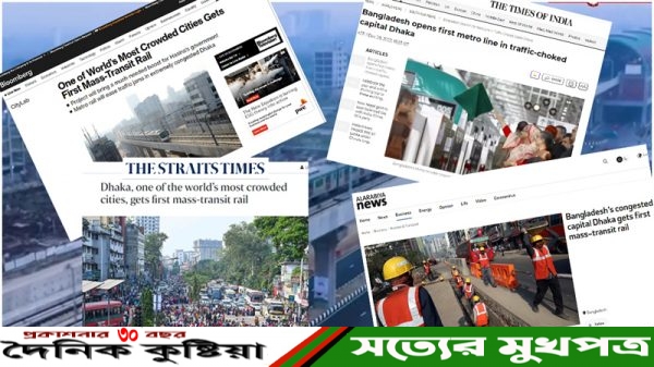দৈনিক কুষ্টিয়া অনলাইন/ বাংলাদেশের নব উন্নয়নের অন্যতম আরেকটি মাইলফলক মেট্রোরেল। ইতোমধ্যে উদ্বোধন হয়েছে। এ নিয়ে বিশ্বের বিভিন্ন দেশের প্রভাবশালী গণমাধ্যমে বেশ গুরুত্বের সঙ্গে খবর প্রকাশ করা হয়েছে। ফরাসি বার্তা সংস্থা
