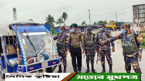 দৈনিক কুষ্টিয়া প্রতিবেদক/ কোভিড-১৯ করোনা ভাইরাস সংক্রমন প্রতিরোধ এবং সরকার ঘোষিত লকডাউন নিশ্চিত করতে প্রশাসনের সঙ্গে সহায়ক হিসেবে একযোগে মাঠে কাজ করছে কুষ্টিয়া জেলা আনসার ও গ্রাম প্রতিরক্ষা বাহিনীর সদস্যরা।