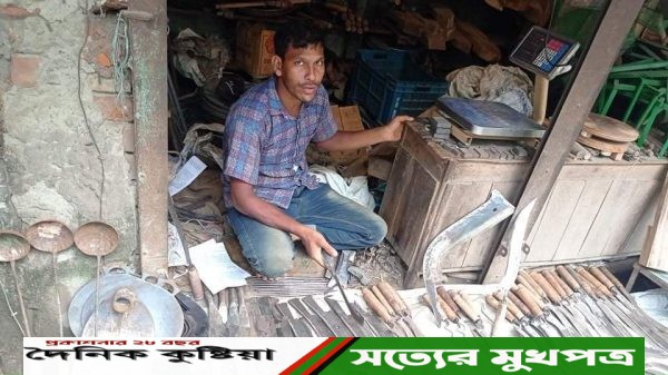মীর রিসান/ ঈদ আমেজ নেই কুষ্টিয়ার কামারশালায়।ঈদুল আযহা কামার মৌসুম হিসেবেই খ্যাত। তবে মহামারীর মধ্যে ঈদুল আযহা আসায় হতাশায় নিমজ্জিত কামাররা। কোরবানি পশুর মাংস কাটার ডাশা চাপাতি ছুরির আশানুরূপ বিক্রি