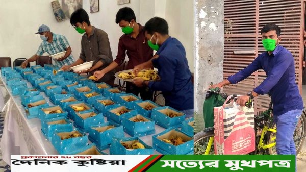 দৈনিক কুষ্টিয়া প্রতিবেদক/ বেসরকারি স্বেচ্ছাসেবী সংগঠন ফেয়ার, ঐতিহ্য পরিষদ ও দুর্যোগ প্রতিরোধ সামাজিক উদ্যোগ এর যৌথ উদ্যোগে ১৪ এপ্রিল প্রথম রমজান থেকে শুরু হয়েছে মাসব্যাপী ইফতার প্রদান কর্মসূচি। করোনা ভাইরাসের