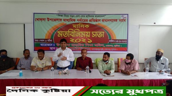 হুমায়ুন কবির, খোকসা/ কুষ্টিয়ার খোকসা উপজেলা মাধ্যমিক অফিসের আয়োজনে উপজেলার সকল মাধ্যমিক পর্যায়ের প্রতিষ্ঠান প্রধানের নিয়ে মাসিক মতবিনিময় সভা অনুষ্ঠিত হয়েছে। রবিবার (৩ অক্টোবর) সকালে উপজেলার জানিপুর ইউনিয়নের ঈশ্বরদী মাধ্যমিক