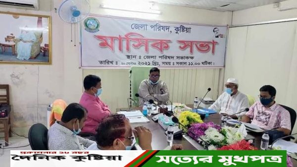 হুমায়ুন কবির/ কুষ্টিয়া জেলা পরিষদের চেয়ারম্যান মুক্তিযোদ্ধা হাজী রবিউল ইসলাম এর সভাপতিত্বে সোমবার সকালে পরিষদ সভা কক্ষে অনুষ্ঠিত হয়েছে। উক্ত সময় উপস্থিত ছিলেন কুষ্টিয়া জেলা পরিষদের প্রধান নির্বাহী কর্মকর্তা মুন্সী মোঃ
