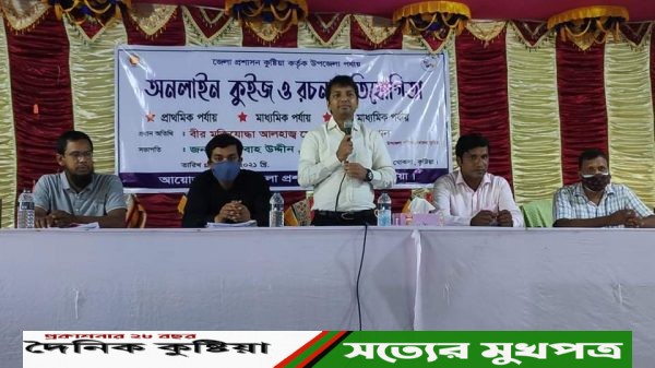 হুমায়ুন কবির, খোকসা/ কুষ্টিয়ার জেলা প্রশাসক কর্তৃক আয়োজিত উপজেলা পর্যায়ে অনলাইন কুইজ ও রচনা প্রতিযোগিতা অনুষ্ঠিত হলো। বৃহস্পতিবার (৯ সেপ্টেম্বর) সকালে খোকসা উপজেলা পরিষদ মিলনায়তনে উপজেলা নির্বাহী অফিসার মেজবাহ্ উদ্দীন