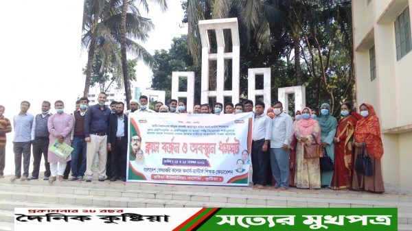 দৈনিক কুষ্টিয়া অনলাইন / কুষ্টিয়ায় বে-সরকারী কলেজ শিক্ষকগণ অবলম্বে এমপিও ভূক্তির দাবীতে ক্লাস বর্জন ও অবস্থান ধর্মঘট করেছে। ২৪ নভেম্বর বুধবার বেলা ১টায় কুষ্টিয়া ইসলামিয়া কলেজ শহীদ মিনার চত্বরে শিক্ষকগণ