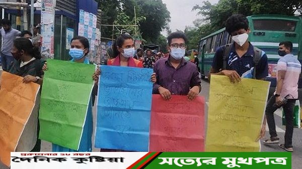 দৈনিক কুষ্টিয়া ডেস্ক শিক্ষার্থীদের দাবি, দ্রুত আবাসিক হল ও ক্যাম্পাস খুলে দিয়ে শিক্ষা কার্যক্রম স্বাভাবিক করতে হবে, বিভিন্ন সেশনে স্থগিত পরীক্ষাসূমহ দ্রুত নেওয়ার ব্যবস্থা করতে হবে এবং সকল শিক্ষার্থীকে করোনা