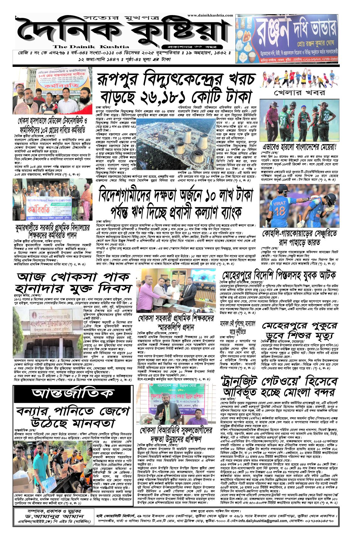 গণপ্রজাতন্ত্রী বাংলাদেশ সরকার কর্তৃক অনুমোদিত দৈনিক কুষ্টিয়া অনলাইন পোর্টাল